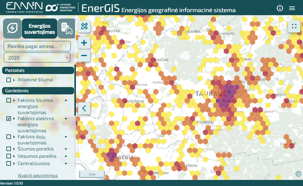 Energijos geografinės informacinės sistemos EnerGIS žemėlapyje