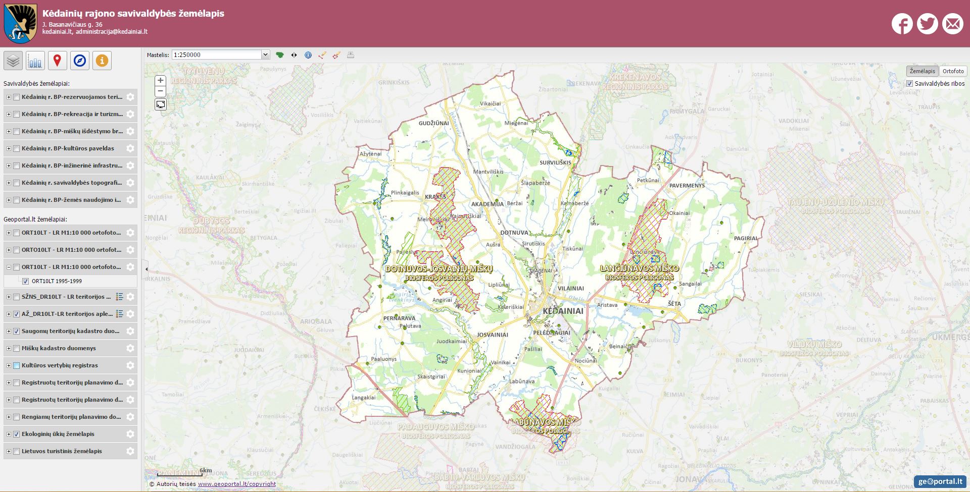 Kėdainių rajono savivaldybės duomenims pritaikyta geoportal.lt žemėlapių naršyklė